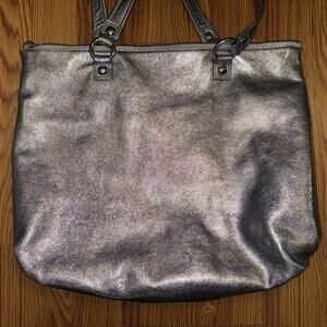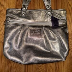 Coach Poppy Purse Shoulder Bag Tote Metallic Silver 1941 Purple Satin Lined Glam