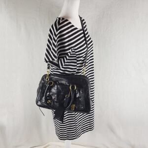 Coach Poppy Pushlock Satchel Black Waxed Leather Fuchsia Lining Removable Strap