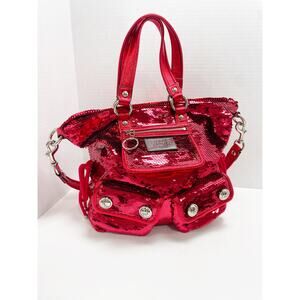 Coach Poppy Red Sequin Glam Tote Shoulder Bag Crossbody Rare