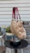 Elegant Coach bag with rich red accents. Features signature tags and zipper detail.
