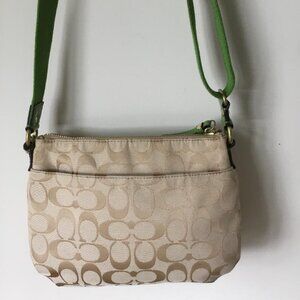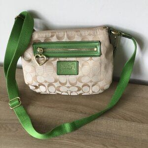 Coach Poppy Signature Canvas Strap Heart Zipper Beige Green Crossbody Bag COA