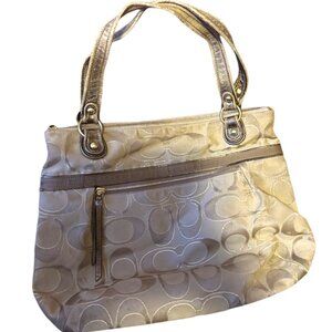 Coach Poppy Signature Gold Tan Tote bag shoulder bag Vintage