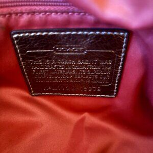This Coach Poppy Signature shoulder bag is a must-have for any fashion-savvy woman. The bag features a unique blend of canvas and leather exterior, with a metallic finish that adds a touch of elegance to the overall design. The bag comes in a classic tan color, with a brown handle and strap that complements the gold hardware. The bag has a large size, with double handles that make it easy to carry. The interior is lined with polyester material, and features inner and outer pockets, as well as an audio pocket, all of which provide ample space for your essentials. The bag also has a zipper closure, with grommets and zipper pull accents that add a touch of style to the overall design. This vintage Coach Poppy bag is a perfect addition to any collection, and is sure to turn heads wherever you go.