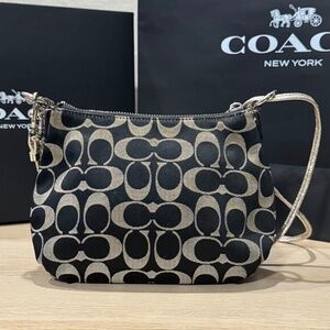 Coach Poppy Signature Pleated Crossbody Bag in Black/Grey Metallic Silver