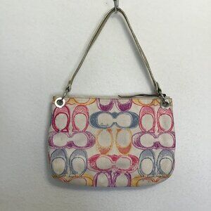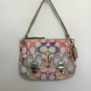 Add a playful twist to your style with the Coach Poppy Signature Canvas Scribble Print Hippie Shoulder bag, Style# 19030, displaying a whimsical and colorful scribble print on signature canvas that adds a splash of fun and personality to your look.