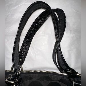 Coach Poppy Signature black Sateen Glam Tote Shoulder Purse Bag