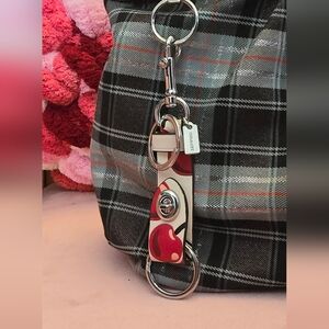 See that white leather cherry print charm? It's genuine Coach and it's yours with a full priced purchase 🍒. The black cherries are part of the package as well, though they are not Coach.