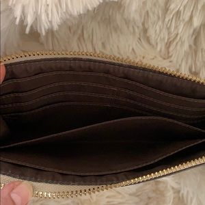 In great condition tan and bronze double zipper wristlet wallet with gold hardware
