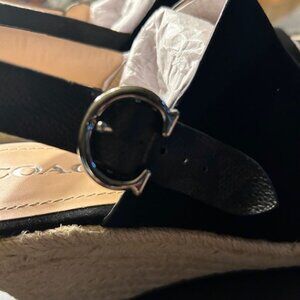 Coach Poppy Wedge Slingback Styling Buckle Closure Black Sandals