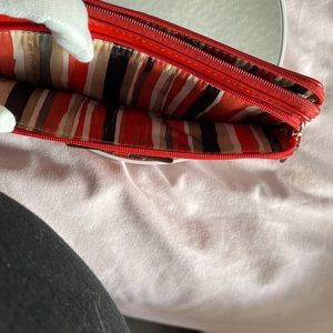 Coach Poppy Wristlet Wallet double entry Orange Leather Brown and Canvas