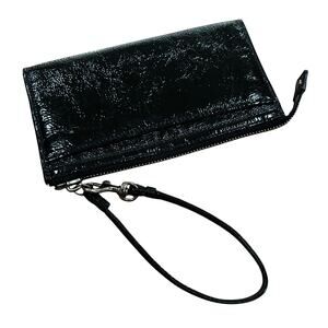 Coach Poppy Wristlet black pebbled & patent leather purse wallet clutch top zip