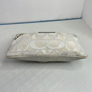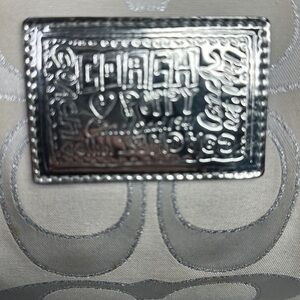 Coach Poppy medium satchel hobo Handbag M1093-17047 gray canvas with metallic C signature -Accents and cream color leather trim and handles