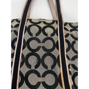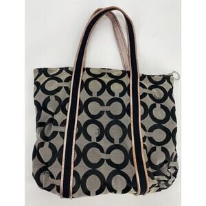 Coach Poppy op art Glam Signature Tote Bag Purse Black Gray Silver 13826 handbag