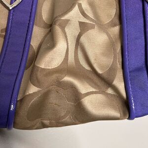 Purple with signature coach print. Great condition. A couple small stains on the bottom( shown in image).