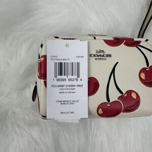 New With Tags, Coach Pouch Wristlet With Cherry Print In Leather/Silver/Chalk Multi CZ470 NWT from smoke and pet free environment.