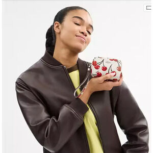 Coach Pouch Wristlet With Cherry Print In Leather/Silver/Chalk Multi CZ470 NWT