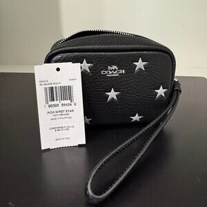 Coach Pouch Wristlet With Star Print CW413 Silver/Black Multi