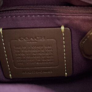 The Coach Carmen Mini Crossbody Bag in powder pink is a chic and compact accessory that combines everyday functionality with timeless style. Crafted from durable canvas and smooth leather, this elegant bag features gold-tone hardware, a secure zip closure, and a matching pink crossbody strap. The detachable strap charm adds a touch of luxury and personalization. Inside, the red fabric lining and inner pockets provide organized storage for your essentials. The color combination of gold and powder pink creates a feminine, polished look that pairs perfectly with casual or dressy outfits.