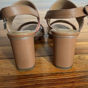 Coach, snakeskin, heels, heeled sandals, strappy, netural, saddle brown, carmine