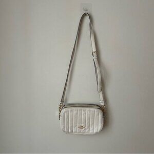 Coach Puffy Linear Quilting Jes Ivory Off White Chalk Leather Crossbody Bag