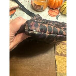 Coach Ocelot or Leopard Print Crossbody bag. It features a brown and purple animal print with black accents. This style is considered vintage or from the Y2K era.