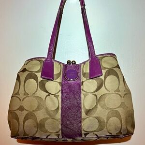Coach Purple and Tan Signature Tote Bag