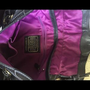 Black Coach purse with soft leather and satin purple lining. Great purse for everyday and extremely well made.