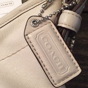 Small Cream colored Authentic Coach purse. Used once, given to me as gift so I do not have original duster. Excellent condition!