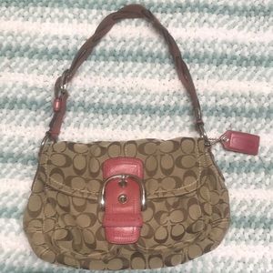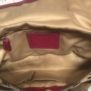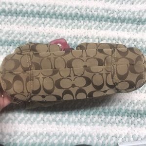 Coach Purse with leather & canvas . Good Condition minor pen ink & make up in lining .