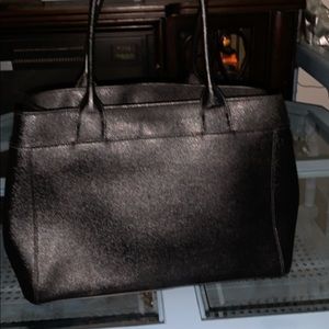 Black leather Coach Purse with inside zip, snap closure and front outside pocket.