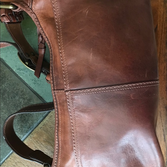Coach purse, shoulder bag, brown, outside pocket, inside zipper pocket