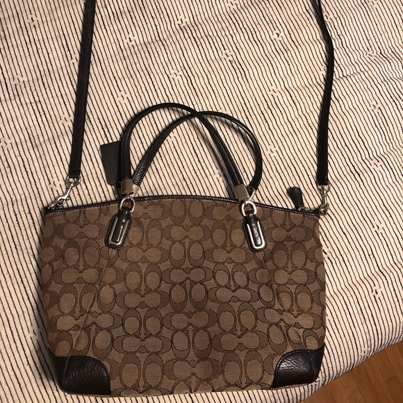 Dual strap coach purse, can be long enough for cross body- I’m fairly good shape- see the wear in the 3rd picture. Has original purse bag it came in. Let me know if you have any questions!