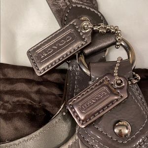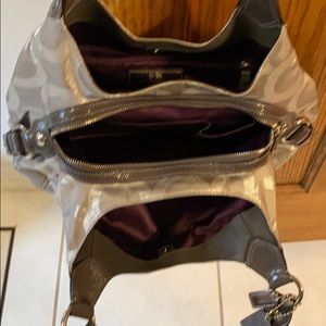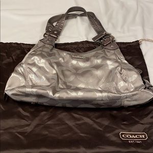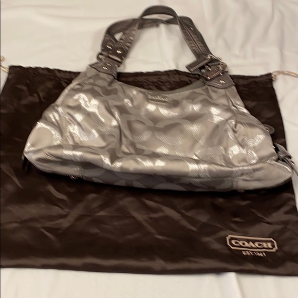 Beautiful silver Coach bag with many compartments inside.New Without tags NWOT and it comes with its dust bag