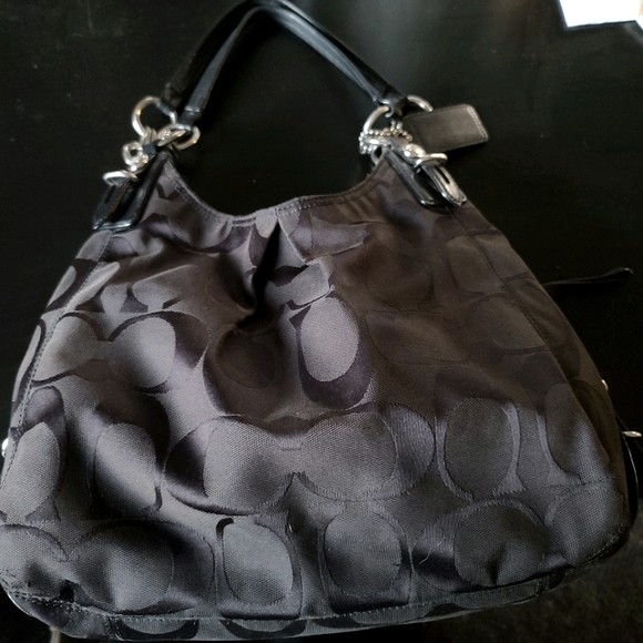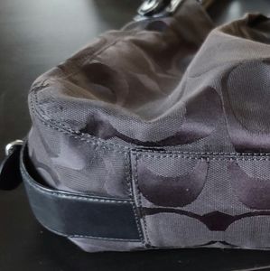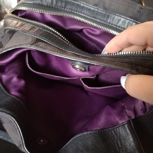 Coach hobo shoulder bag black with purple lining inside. There is a little wear but in overall great condition! Has three separate sections with multiple pockets inside. No stains or tears. All zippers work. Also still has original Coach charm tag.