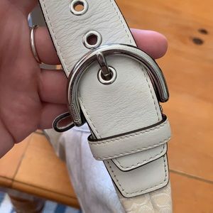 Authentic Coach purse. It is used but still in decent condition. It’s white so it does has some markings, but I think it just needs to be cleaned. Price reflects this.