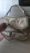Although only used for one evening, and in almost new condition, it does have a few scratches on the hardware and the strap as you can see in both pictures, but unnoticeable. Tags are still inside.