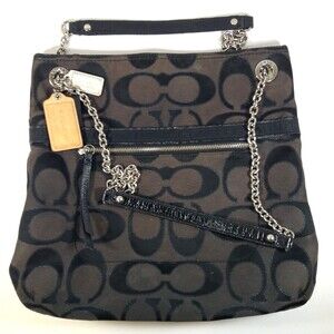 Coach Black Fabric Classic Designer Preppy Luxury Old Money Shoulder Purse Bag with Chain Strap & Brand Logo Charm Tags