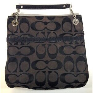 Coach Purse Bag Black Fabric Shoulder Strap & Chain Logo Old Money G1282-21161