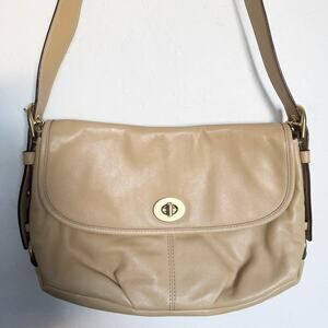 Coach Purse Bag Crossbody Tan Legacy Turnlock Smooth Leather Flap Satin Lining