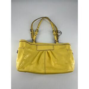 Coach Purse Canary Yellow Patent Leather Tote Shoulder Bag Designer Authentic