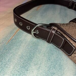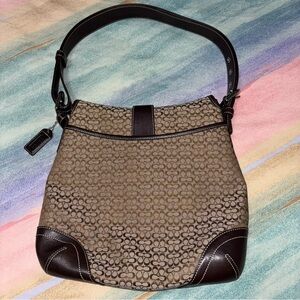 Coach Purse Crossbody Bag Brown Leather Light Fabric Canvas K3M-6376 Authentic