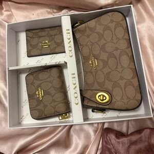 Received as a gift, no receipt. It's in very good condition and has never been used. Wallet + card holder comes with the purse. The purse comes with a chain