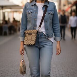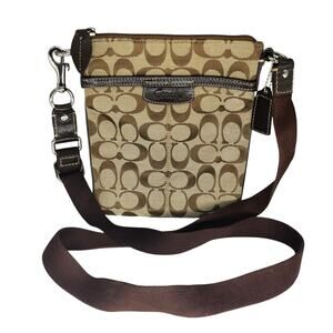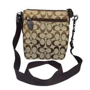Coach Purse Y2k Brown Canvas Leather Crossbody Small 2000s Signature Brown Tan