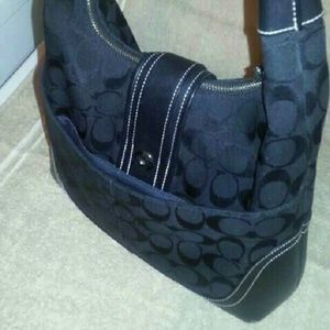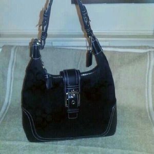 Authenic Black Signature Buckle Front, Hobo Style. Style 6824 Black Jacquard Shoulder Bag.