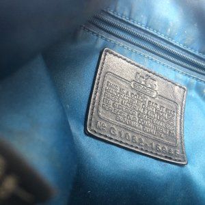 Coach signature with sequins. Black/gray. Silver hardware. Satin lining. Top handles and short shoulder strap. Inside does have some makeup marks in it. Used. Throw Back for sure!