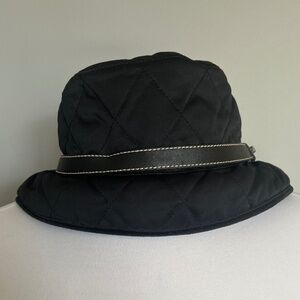 Coach Quilted Bucket Winter Hat in Black With Leather Trim Petite Small