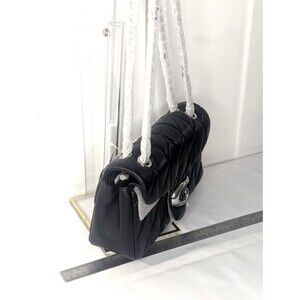 This Coach Quilted Tabby Shoulder Bag 26 comes in classic black leather, with a quilted exterior and an adjustable silver & black chain shoulder strap. This stylish shoulder bag by Coach is crafted with leather and metal hardware, making it both durable and elegant. The snap closure and chain strap provide convenience and versatility, while the black leather and fabric lining ensure a timeless and sophisticated look. Perfect for everyday use or special occasions, this Coach Tabby Shoulder Bag is a must-have accessory for any fashion-forward woman.