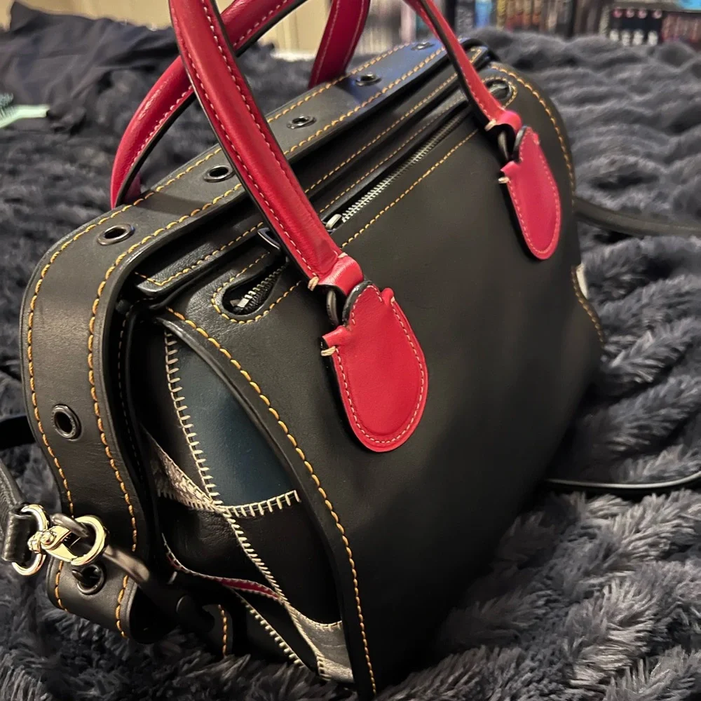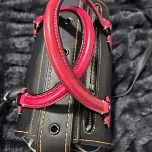 Elevate your style with this chic black and red handbag. Perfect for any occasion, this bag combines elegance with functionality.