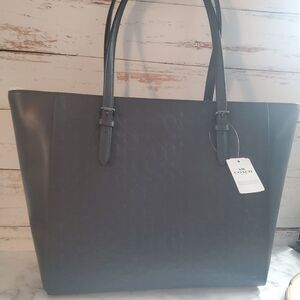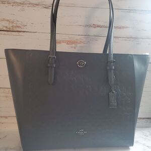 Coach RETAIL Signature C embossed turnlock tote In Midnight With Silver Hardware