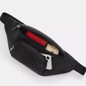 The Racer Belt Bag keeps everything you need for your next adventure right at your fingertips. Crafted of smooth leather, this leather belt bag has an adjustable strap that allows for comfortable shoulder or crossbody wear. It also features multifunction pockets that keep everything organized. To ensure your belongings stay safe, this men's leather belt bag is finished with an easy-to-use speedclip closure.